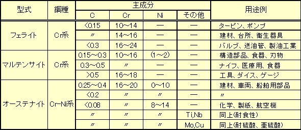 表1不銹鋼的種類1)![]() |